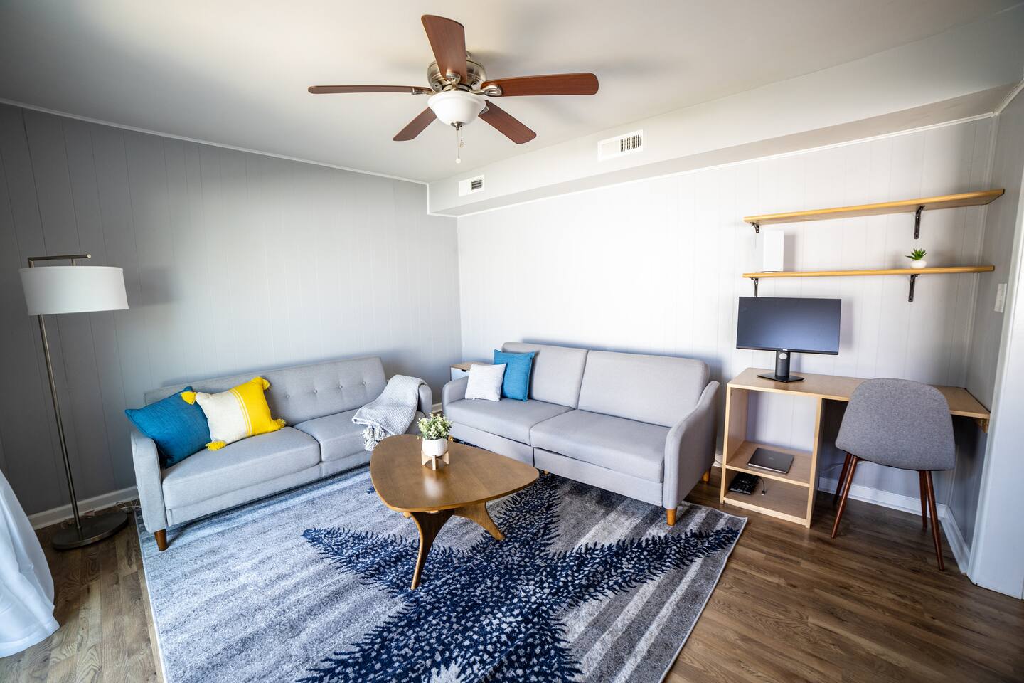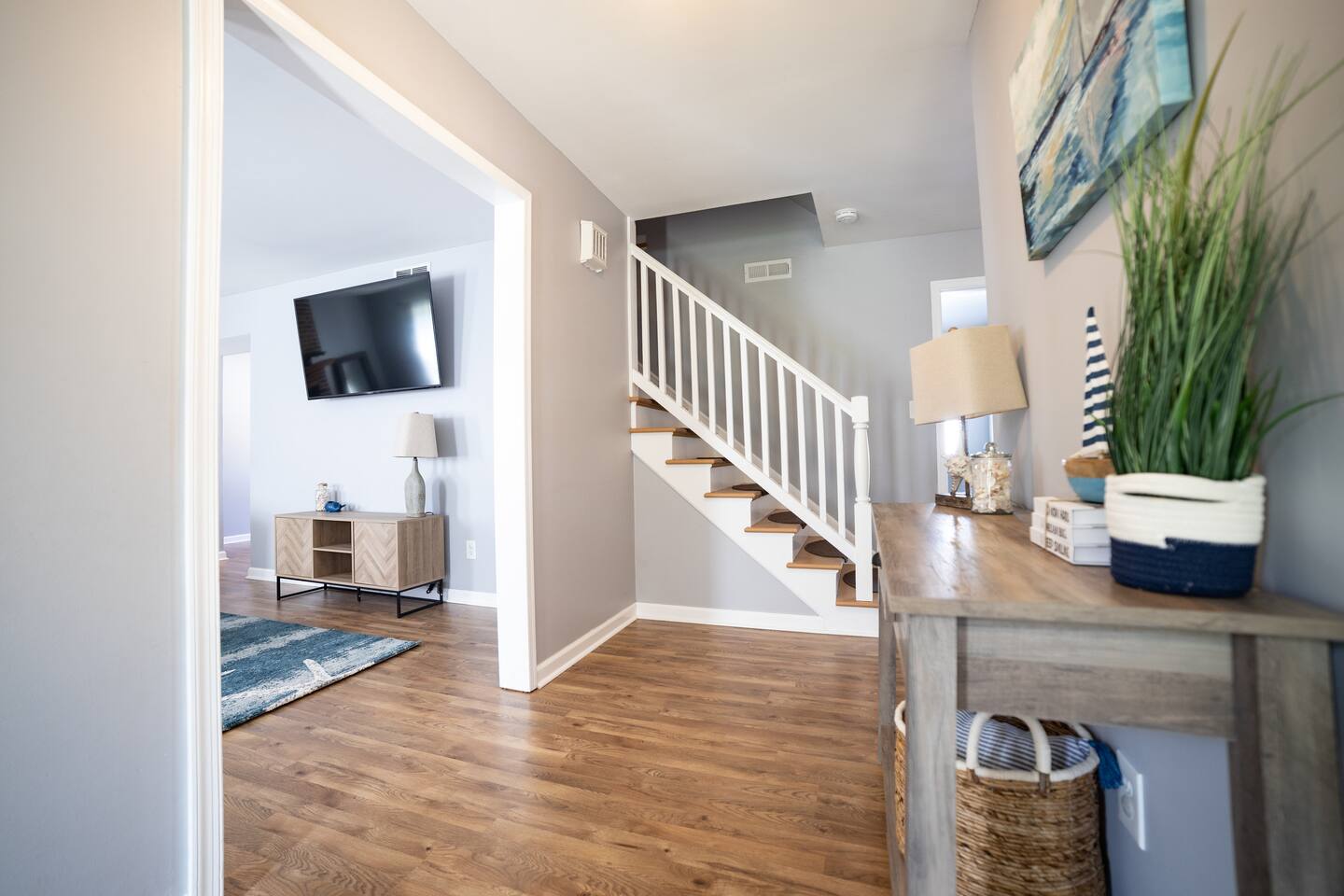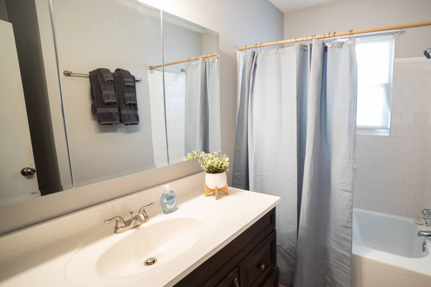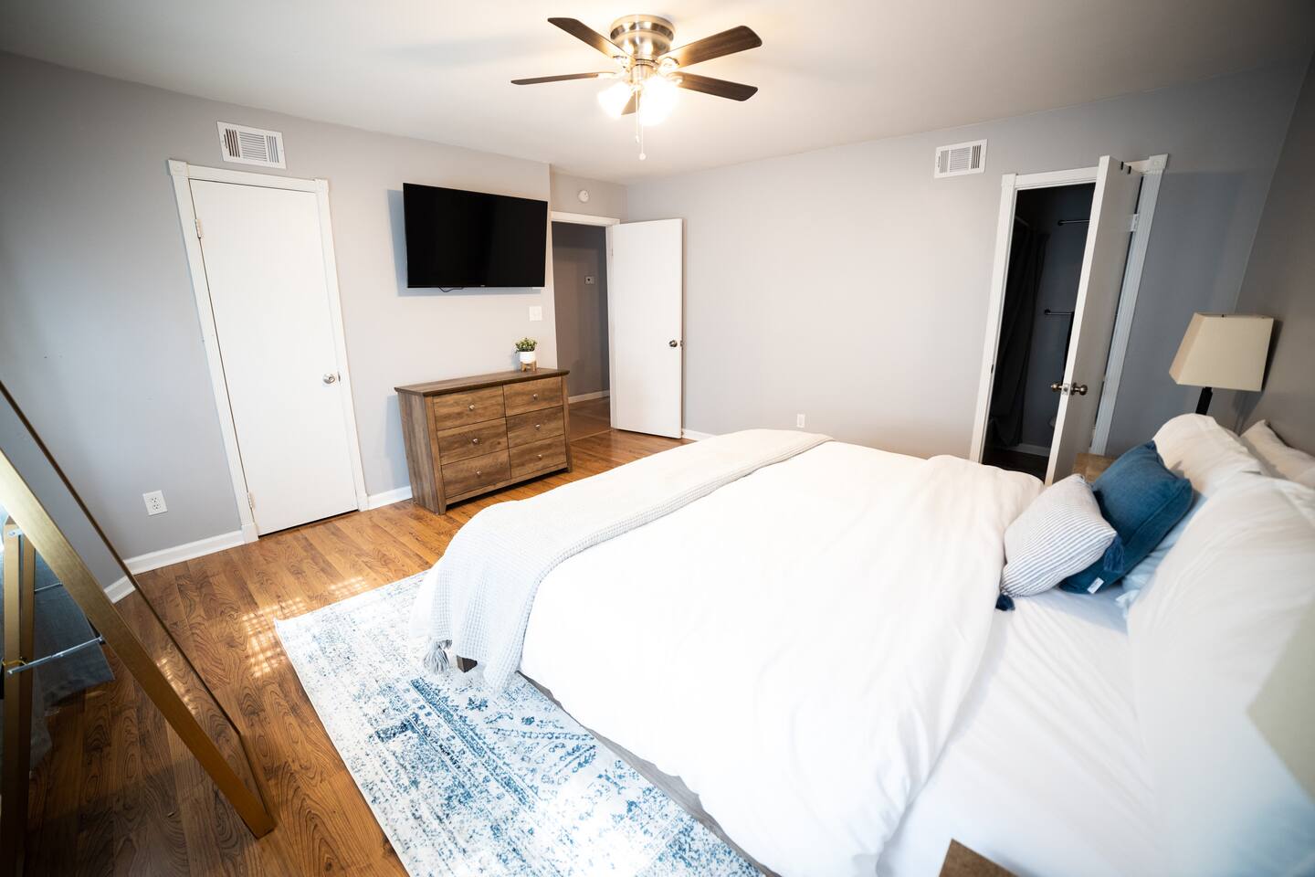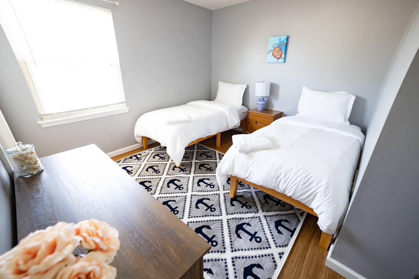 🛋️ THE SPACE This thoughtfully designed home offers the ideal blend of comfort, function, and convenience. Whether you're traveling with family, friends, or colleagues, you'll feel right at home in this cozy yet spacious retreat for 8 guests! 🍳 KITCHEN The kitchen is fully equipped with everything you need, whether you’re brewing your morning coffee or preparing a full meal. Complete with a drip coffee maker, cookware, utensils, and pantry basics, this space is ready to support your stay. 🛏️ BEDROOMS Bedroom 1 (upstairs): Double bed with crib Bedroom 2 (upstairs): King bed with ensuite full bathroom Bedroom 3 (upstairs): 2 single beds Bedroom 4 (upstairs): Queen bed 🚿 BATHROOMS •Bathroom 1 (upstairs): Full bathroom w/ enclosed shower area, located between bedroom 3 and 4 •Bathroom 2 (upstairs): Full bathroom w/ shower, bathroom ensuite to King bedroom suite •Bathroom 3 (downstairs): Half bathroom All includes starter toiletries: shampoo, conditioner, body towels and body wash. 🌟 KEY AMENITIES • Keyless & contactless self-check-in • Outdoor security cameras for added safety • Baby crib and high chair available • Smart TVs (log into your own Netflix, Hulu, Disney+, etc.) • Propane grill • Complimentary washer/dryer with detergent provided • Dedicated workspace for remote work • Fast, free Wi-Fi • Quiet neighborhood across from park w/ children’s playground • Dedicated street parking in front of the house 🧼 CLEANING & SAFETY We follow strict cleaning protocols before each stay, with added disinfection of all high-touch surfaces including light switches, remote controls, doorknobs, and keypads. 🏡 LONG-TERM OPTIONS? Monthly rentals available! Please submit inquiry for our special monthly pricing.
