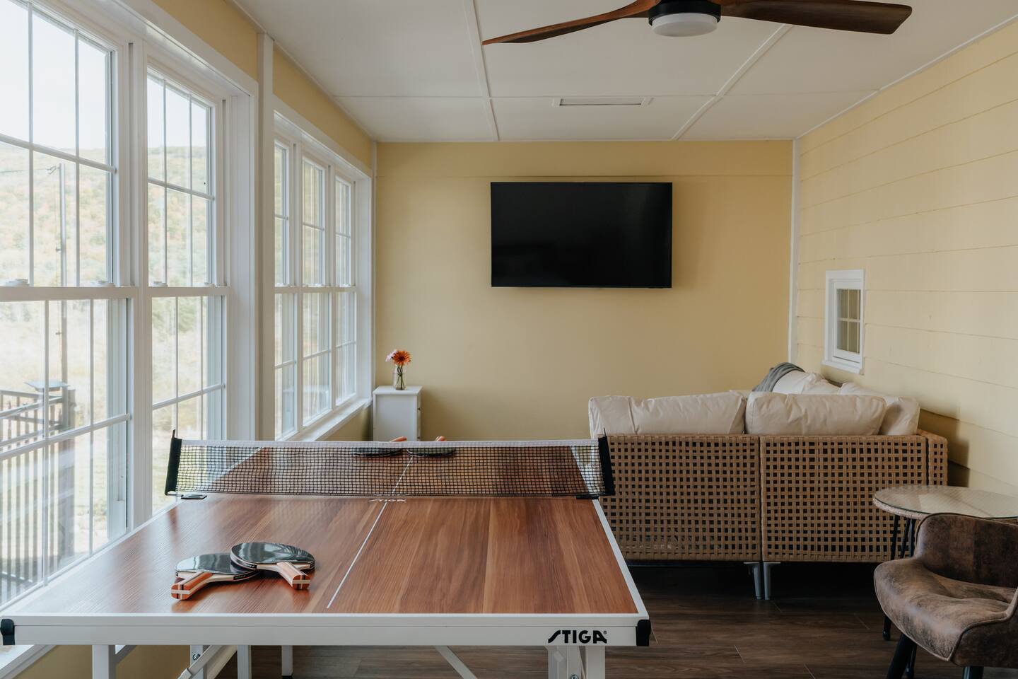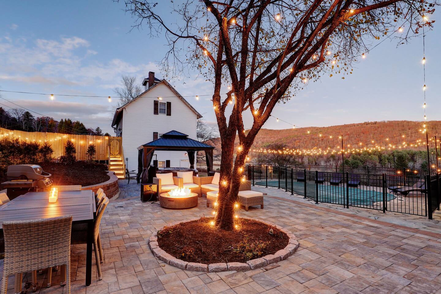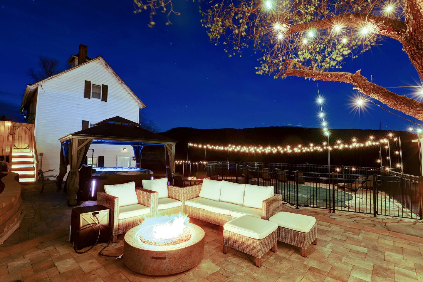 Experience the charm of the countryside in this spacious, thoughtfully restored 7-bedroom farmhouse, designed for connection, relaxation, and memory-making. Perfect for family gatherings, group retreats, or cozy weekends with friends, the home comfortably accommodates up to 14 guests (plus a crib) in a layout that balances warmth and togetherness. 🛏 Bedrooms & Sleeping Arrangements: Main Level ● Bedroom 1: Queen bed + ensuite bathroom ● Bedroom 2: Queen bed ● Bedroom 3: Twin bed ● Bedroom 4: Twin bed Upstairs ● Bedroom 5: Two twin beds ● Bedroom 6: King bed + ensuite bathroom ● Bedroom 7: Two full beds + crib Bonus: One pack ’n play and one twin-size rollaway bed are also available. Each bedroom features cozy linens, charming décor, and plenty of natural light—ideal for restful winter mornings and quiet nights in. 🍽 Kitchen & Dining: ● Fully equipped chef’s kitchen with stainless steel appliances ● Keurig + drip coffee makers, wine fridge, spices, toddler plates & bowls ● Eat-in breakfast nook for 6 ● Formal dining room with seating for 10—ideal for holiday meals and celebrations 🎯 Game Room & Entertainment: ● Game room with two arcade machines, poker table, and classic board games ● Sunroom with indoor ping pong table, mountain views & 55” Smart TV ● 5 Smart TVs throughout the home ● High-speed Wi-Fi for streaming or remote work 🌿 Outdoor Features: ● Private backyard with breathtaking views of the hills ● Brand new hot tub for crisp winter nights ● Two fire pits: propane lounge set + 10-person wood-burning pit ● Weber grill, outdoor dining for 10, and string lights for cozy evening ambiance 🌊 Pool (Closed for the Season) Our private pool is open May through mid-October (weather permitting). During winter, enjoy the hot tub and fire pits for a relaxing outdoor experience. 📶 GENERAL ● Free Wi-Fi ● Radiator heating throughout the home ● Hot tub towels, bed linens, and bath essentials provided ● Toiletries (soap, shampoo, conditioner, body wash) ● Paper products and cleaning supplies included 🧺 WASHER/DRYER An in-unit washer/dryer combo is available with complimentary, scent-free detergent. 🚗 PARKING ● Driveway fits up to 5 vehicles ● Parking permitted only in designated areas ● Detailed parking info provided at check-in ❄️ Winter Weather & Property Maintenance Notice The property is regularly plowed and shoveled; however, snow and ice conditions may vary during active storms. For your convenience and safety, salt and shovels are provided on-site for guest use. Please note that some amenities are seasonal, and the outdoor fire pit may not be accessible during the winter months due to snow and weather conditions. Routine snow plowing or lawn care may occur during your stay. Additionally, weekly hot tub maintenance may take place to ensure guest comfort and safety. ✨ Whether you’re sipping cocoa by the fire, soaking in the hot tub under the stars, or watching the snow fall over the hills, this farmhouse retreat is your perfect upstate winter getaway.