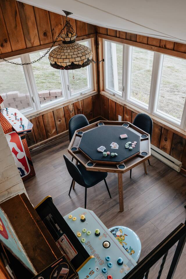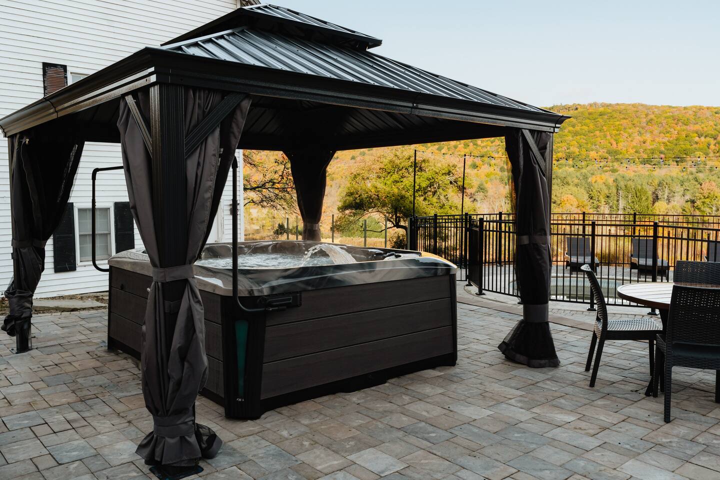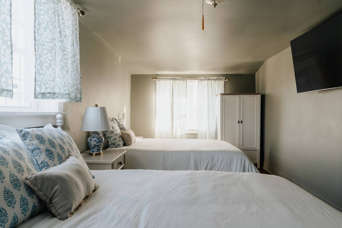 Experience the charm of the countryside in this spacious, thoughtfully restored 7-bedroom farmhouse, designed for connection, relaxation, and memory-making. Perfect for family gatherings, group retreats, or cozy weekends with friends, the home comfortably accommodates up to 14 guests (plus a crib) in a layout that balances warmth and togetherness. 🛏 Bedrooms & Sleeping Arrangements: Main Level ● Bedroom 1: Queen bed + ensuite bathroom ● Bedroom 2: Queen bed ● Bedroom 3: Twin bed ● Bedroom 4: Twin bed Upstairs ● Bedroom 5: Two twin beds ● Bedroom 6: King bed + ensuite bathroom ● Bedroom 7: Two full beds + crib Bonus: One pack ’n play and one twin-size rollaway bed are also available. Each bedroom features cozy linens, charming décor, and plenty of natural light—ideal for restful winter mornings and quiet nights in. 🍽 Kitchen & Dining: ● Fully equipped chef’s kitchen with stainless steel appliances ● Keurig + drip coffee makers, wine fridge, spices, toddler plates & bowls ● Eat-in breakfast nook for 6 ● Formal dining room with seating for 10—ideal for holiday meals and celebrations 🎯 Game Room & Entertainment: ● Game room with two arcade machines, poker table, and classic board games ● Sunroom with indoor ping pong table, mountain views & 55” Smart TV ● 5 Smart TVs throughout the home ● High-speed Wi-Fi for streaming or remote work 🌿 Outdoor Features: ● Private backyard with breathtaking views of the hills ● Brand new hot tub for crisp winter nights ● Two fire pits: propane lounge set + 10-person wood-burning pit ● Weber grill, outdoor dining for 10, and string lights for cozy evening ambiance 🌊 Pool (Closed for the Season) Our private pool is open May through mid-October (weather permitting). During winter, enjoy the hot tub and fire pits for a relaxing outdoor experience. 📶 GENERAL ● Free Wi-Fi ● Radiator heating throughout the home ● Hot tub towels, bed linens, and bath essentials provided ● Toiletries (soap, shampoo, conditioner, body wash) ● Paper products and cleaning supplies included 🧺 WASHER/DRYER An in-unit washer/dryer combo is available with complimentary, scent-free detergent. 🚗 PARKING ● Driveway fits up to 5 vehicles ● Parking permitted only in designated areas ● Detailed parking info provided at check-in ❄️ Winter Weather & Property Maintenance Notice The property is regularly plowed and shoveled; however, snow and ice conditions may vary during active storms. For your convenience and safety, salt and shovels are provided on-site for guest use. Please note that some amenities are seasonal, and the outdoor fire pit may not be accessible during the winter months due to snow and weather conditions. Routine snow plowing or lawn care may occur during your stay. Additionally, weekly hot tub maintenance may take place to ensure guest comfort and safety. ✨ Whether you’re sipping cocoa by the fire, soaking in the hot tub under the stars, or watching the snow fall over the hills, this farmhouse retreat is your perfect upstate winter getaway.