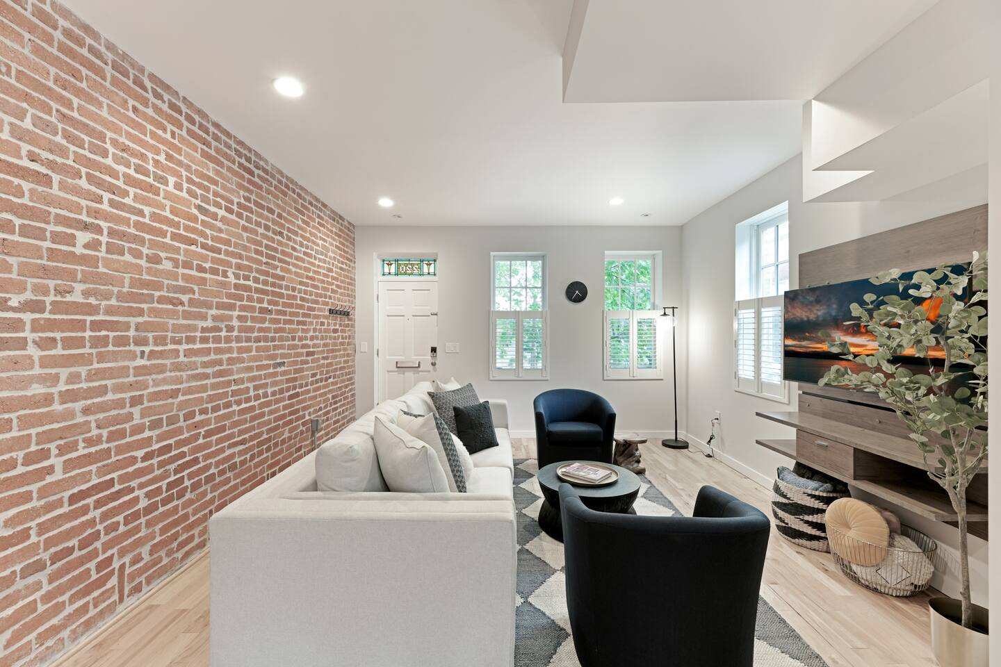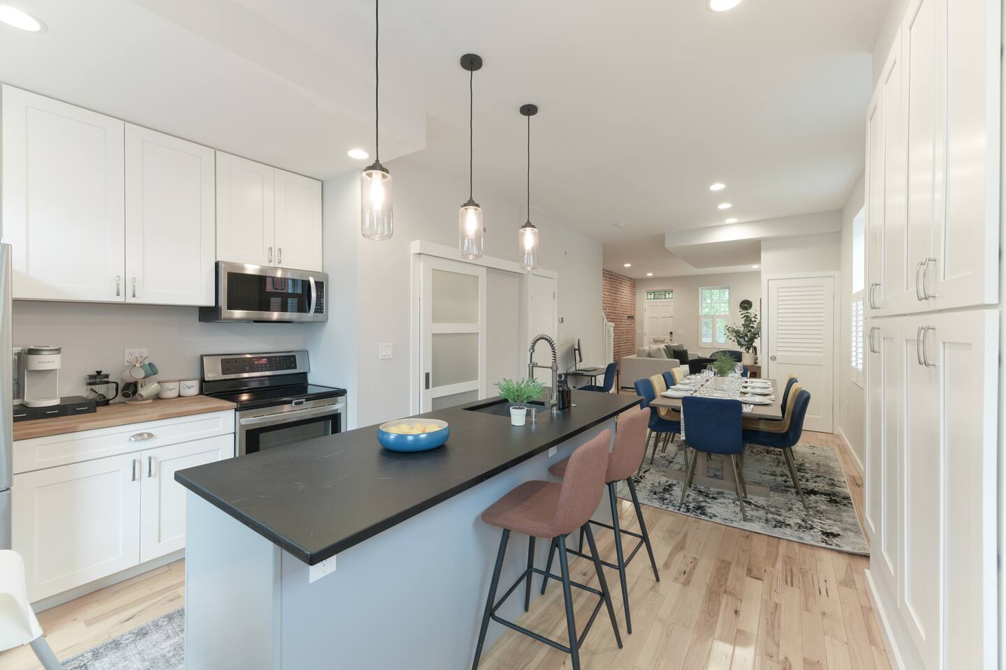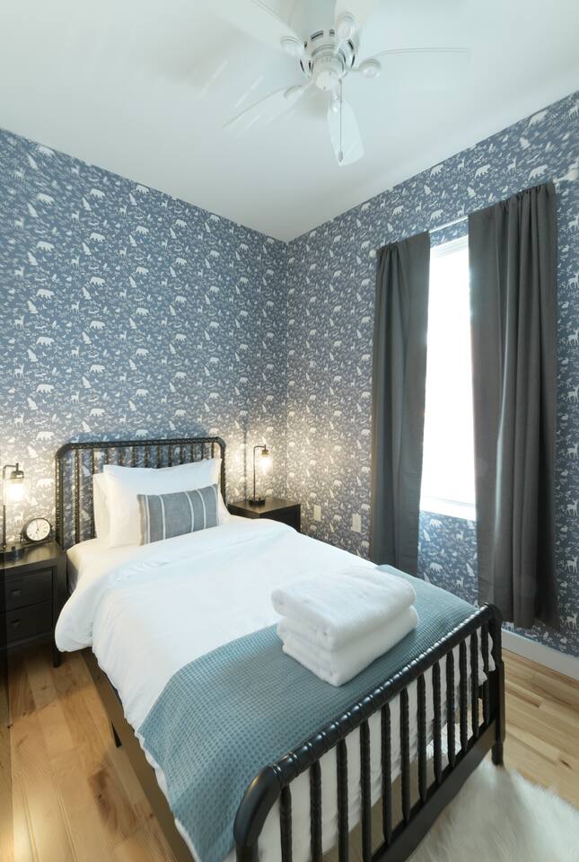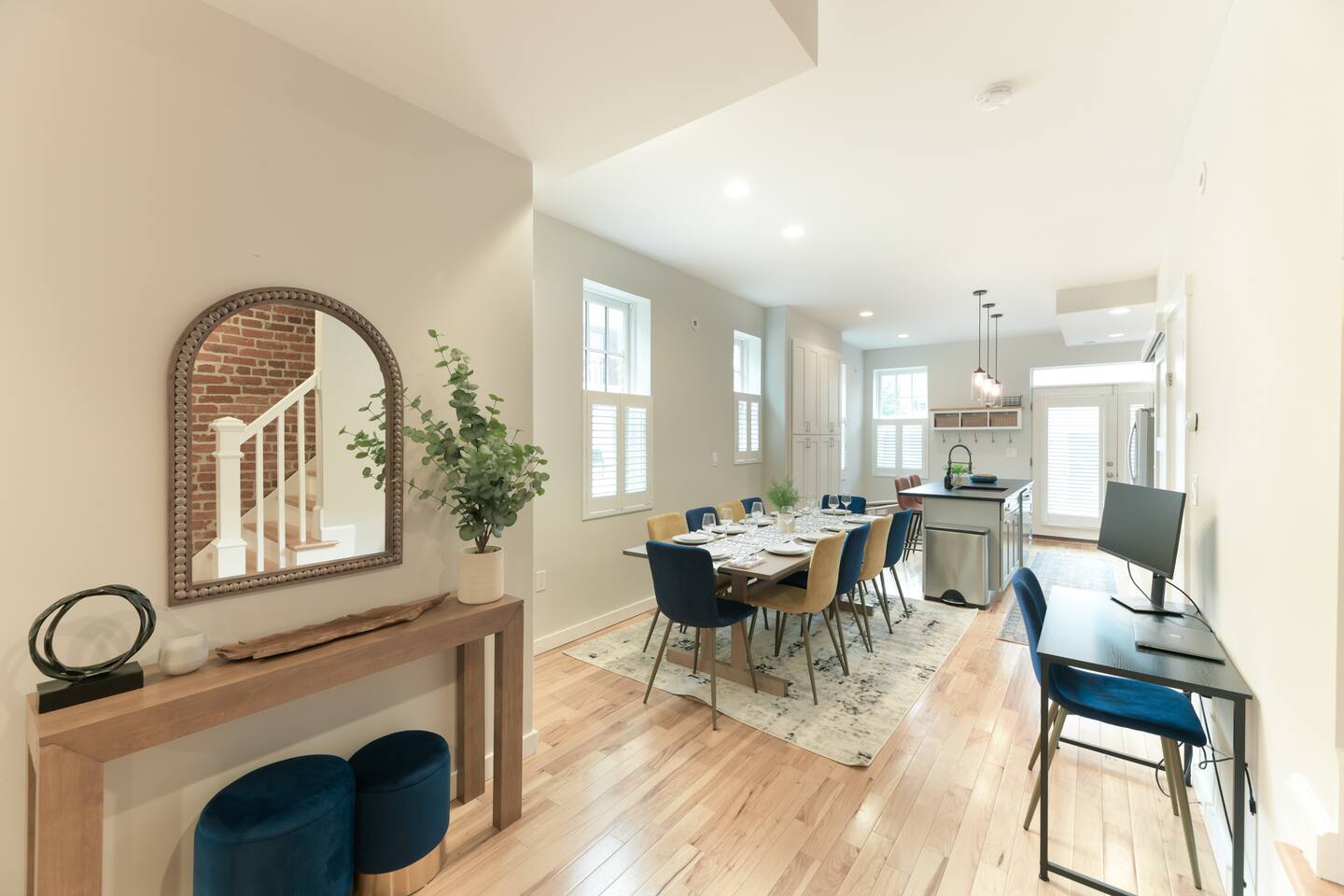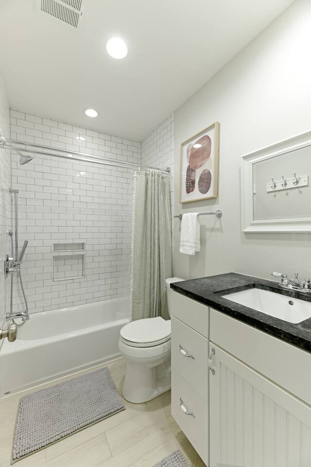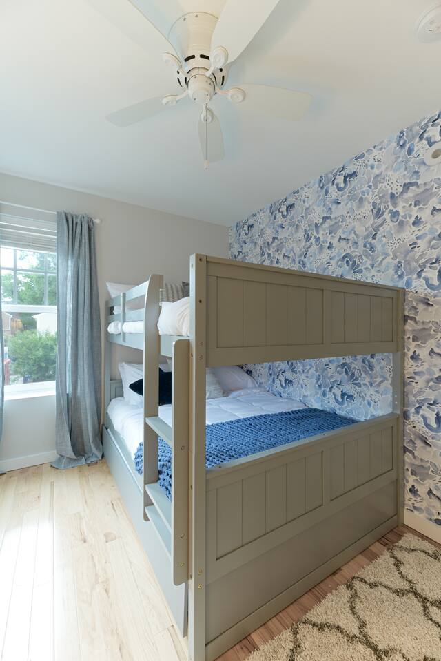 🛋️ THE SPACE Step into a thoughtfully designed space that blends sophistication and comfort. The open-concept layout connects the living, dining, and kitchen areas, creating a welcoming flow for both relaxation and entertaining. High-end furnishings, curated artwork, and elegant décor add to the stylish ambiance throughout. 🍳 KITCHEN The gourmet kitchen is a culinary enthusiast’s dream—featuring granite countertops, premium appliances, and a cozy breakfast nook. Whether it's a quick morning coffee or a full dinner party, this space is equipped to inspire your inner chef. 🛏️ BEDROOMS Bedroom 1: Full-size bunk bed with a pull-out twin trundle Bedroom 2: King bed and spa-like en-suite bathroom. Bedroom 3: Twin bed with memory foam mattress Sleeps 6 adults + 2 children | Max occupancy: 8 🚿 BATHROOMS Enjoy the convenience of 2.5 bathrooms—ample space for families and groups to get ready with ease. 🌟 KEY AMENITIES • Located in a vibrant, family-friendly, and safe neighborhood (walkable to cafes, restaurants, and ice cream shops) • 5-minute walk to Whole Foods • Lightning-fast, secure Wi-Fi • Seamless self-check-in with digital keypad • 55" Smart TV in living room + 45" Smart TV in primary bedroom • Dining table for 8 + breakfast bar seating for 2 • Fully stocked kitchen with cooking essentials and spices • Keurig single-cup machine with complimentary pods • French press with coffee bean grinder • Dedicated workspace with desk and chair • Toddler-friendly amenities: dinnerware, high chair, and pack 'n play • In-unit washer and dryer • Complimentary street parking with visitor pass 📍 NEARBY ATTRACTIONS • Old Town Waterfront – 5 min by car • National Harbor – 9 min • National Mall – 12 min • White House – 16 min • Washington Monument – 15 min • Smithsonian Air & Space Museum – 12 min • Kennedy Center – 12 min • Arlington National Cemetery – 10 min • National Zoo – 15 min • National Gallery of Art – 13 min • Gaylord Convention Center – 22 min • Reagan National Airport – 10 min • Dulles International Airport – 25 min 🛒 GROCERY STORES & ESSENTIALS • Whole Foods – 7 min walk • Trader Joe’s – 5 min by car • Target – 7 min by car • FedEx – 7 min by car 🏡 NEED MORE OPTIONS? If your dates aren’t available, please ask about our 3 other beautiful properties in Alexandria!