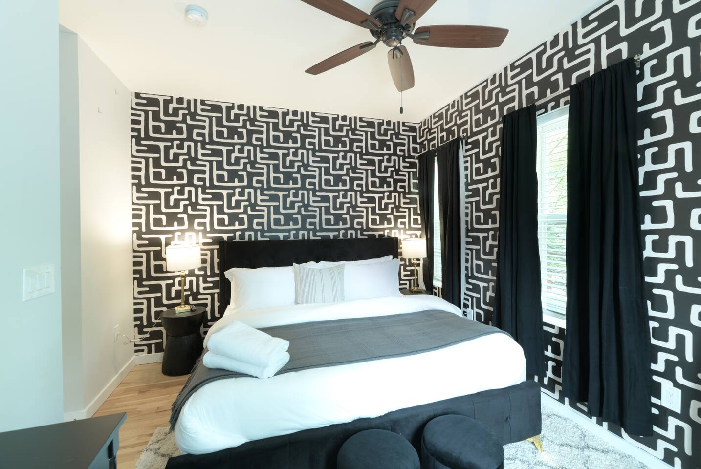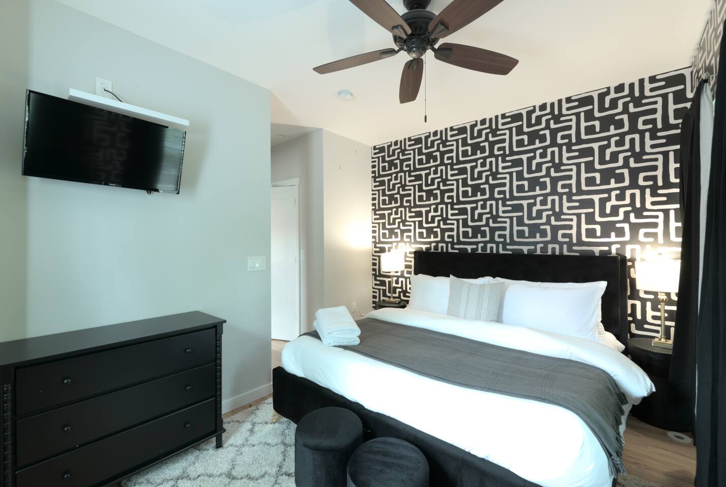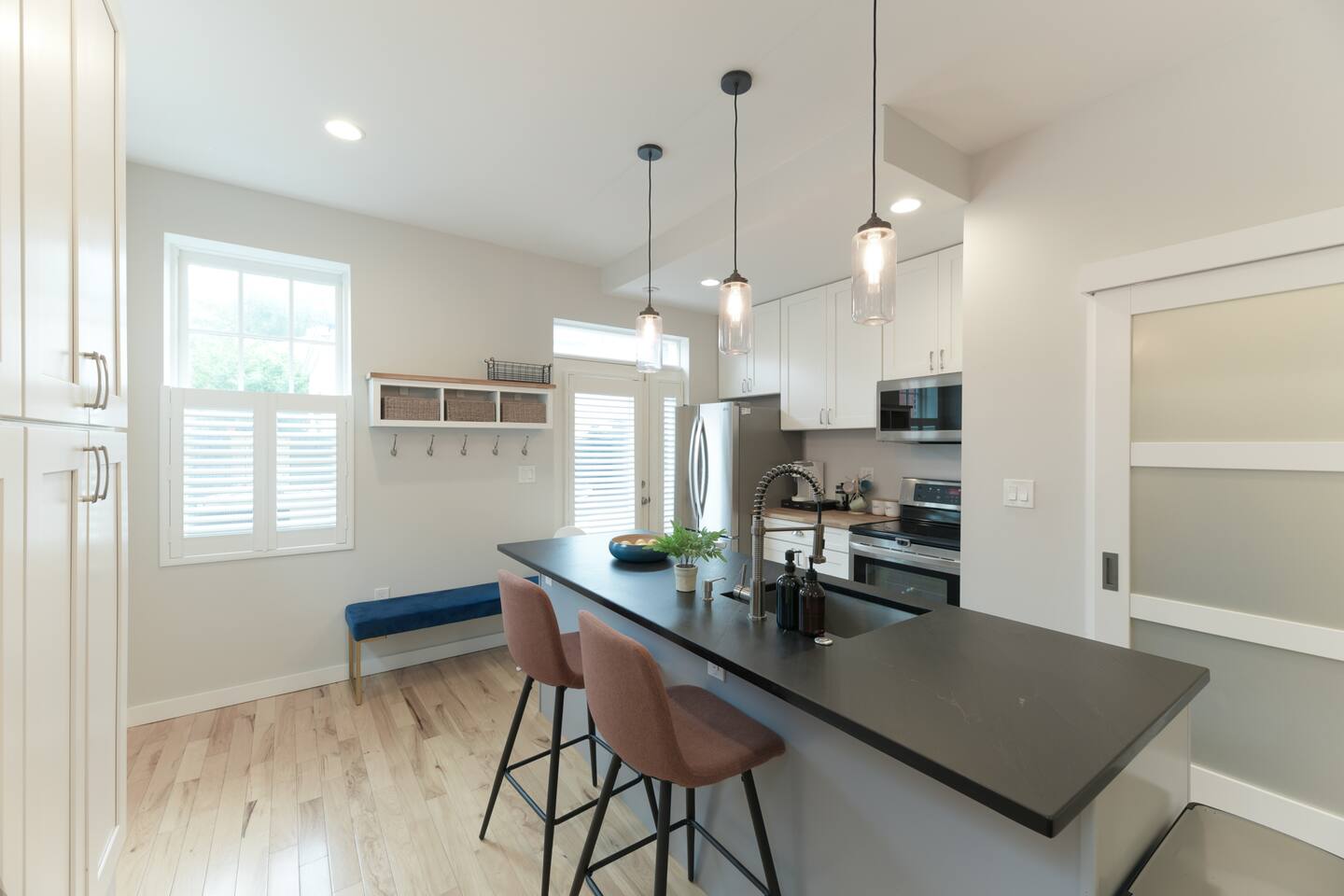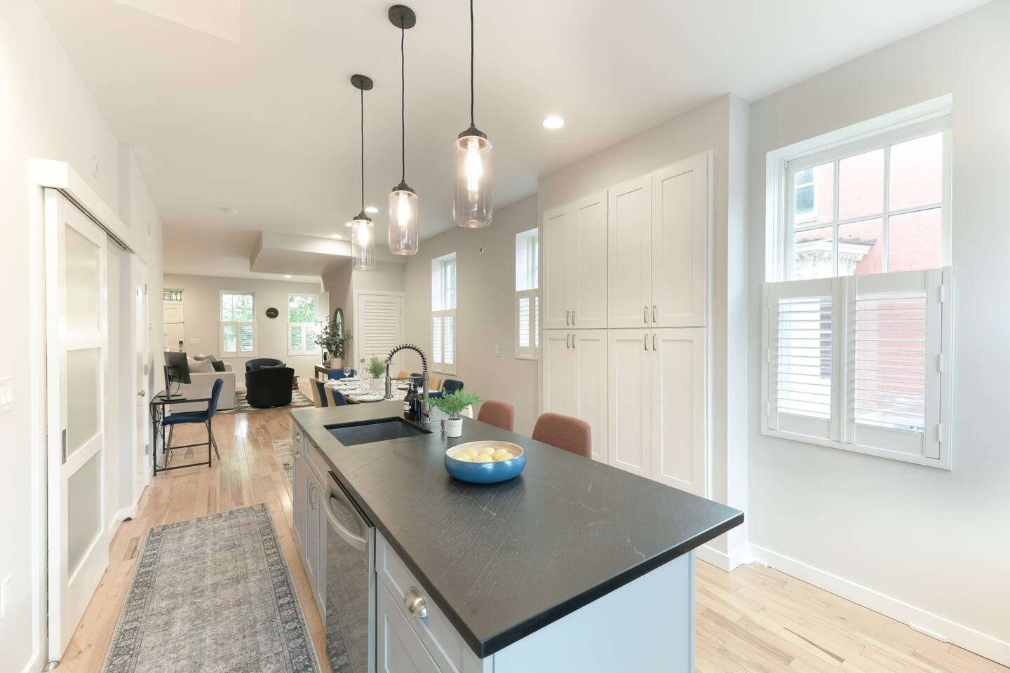 🛋️ THE SPACE Step into a thoughtfully designed space that blends sophistication and comfort. The open-concept layout connects the living, dining, and kitchen areas, creating a welcoming flow for both relaxation and entertaining. High-end furnishings, curated artwork, and elegant décor add to the stylish ambiance throughout. 🍳 KITCHEN The gourmet kitchen is a culinary enthusiast’s dream—featuring granite countertops, premium appliances, and a cozy breakfast nook. Whether it's a quick morning coffee or a full dinner party, this space is equipped to inspire your inner chef. 🛏️ BEDROOMS Bedroom 1: Full-size bunk bed with a pull-out twin trundle Bedroom 2: King bed and spa-like en-suite bathroom. Bedroom 3: Twin bed with memory foam mattress Sleeps 6 adults + 2 children | Max occupancy: 8 🚿 BATHROOMS Enjoy the convenience of 2.5 bathrooms—ample space for families and groups to get ready with ease. 🌟 KEY AMENITIES • Located in a vibrant, family-friendly, and safe neighborhood (walkable to cafes, restaurants, and ice cream shops) • 5-minute walk to Whole Foods • Lightning-fast, secure Wi-Fi • Seamless self-check-in with digital keypad • 55" Smart TV in living room + 45" Smart TV in primary bedroom • Dining table for 8 + breakfast bar seating for 2 • Fully stocked kitchen with cooking essentials and spices • Keurig single-cup machine with complimentary pods • French press with coffee bean grinder • Dedicated workspace with desk and chair • Toddler-friendly amenities: dinnerware, high chair, and pack 'n play • In-unit washer and dryer • Complimentary street parking with visitor pass 📍 NEARBY ATTRACTIONS • Old Town Waterfront – 5 min by car • National Harbor – 9 min • National Mall – 12 min • White House – 16 min • Washington Monument – 15 min • Smithsonian Air & Space Museum – 12 min • Kennedy Center – 12 min • Arlington National Cemetery – 10 min • National Zoo – 15 min • National Gallery of Art – 13 min • Gaylord Convention Center – 22 min • Reagan National Airport – 10 min • Dulles International Airport – 25 min 🛒 GROCERY STORES & ESSENTIALS • Whole Foods – 7 min walk • Trader Joe’s – 5 min by car • Target – 7 min by car • FedEx – 7 min by car 🏡 NEED MORE OPTIONS? If your dates aren’t available, please ask about our 3 other beautiful properties in Alexandria!