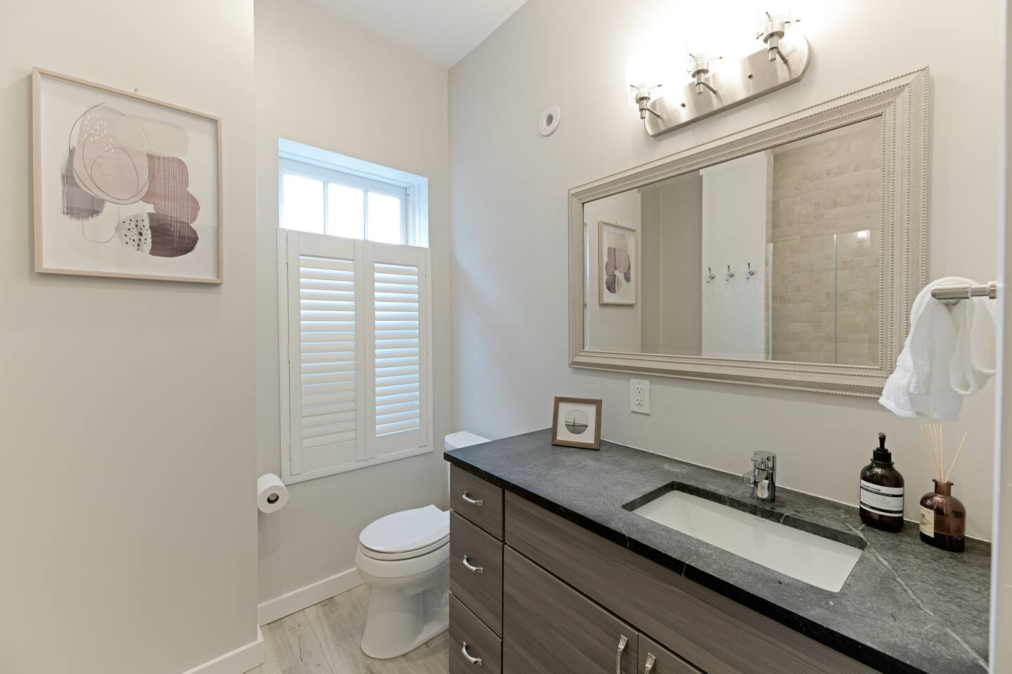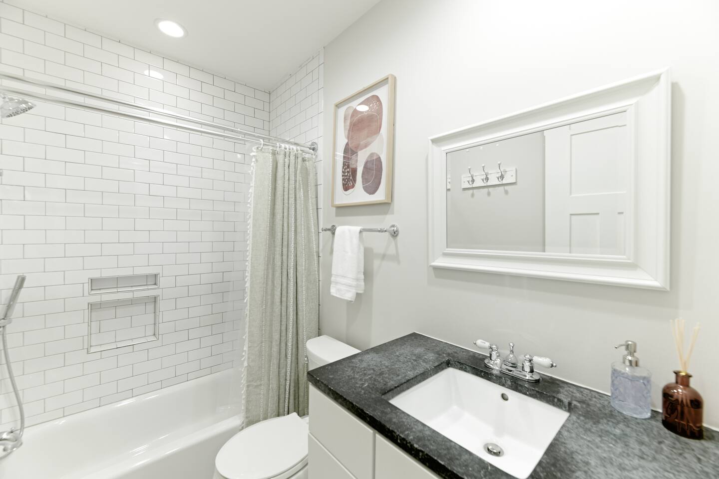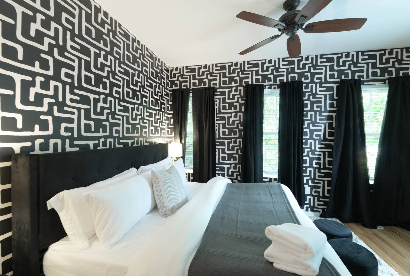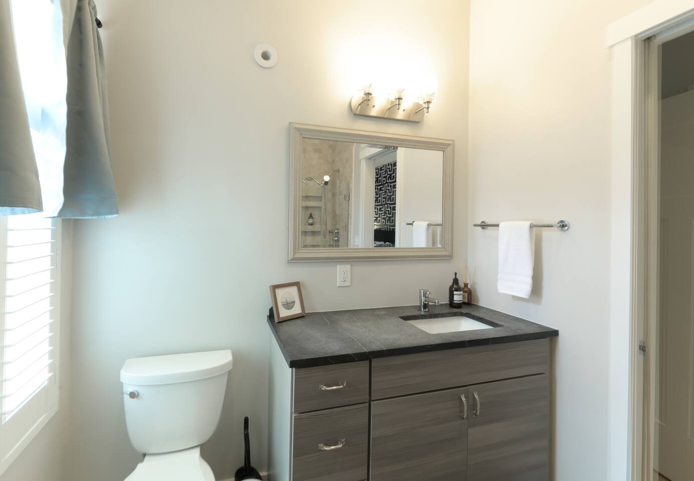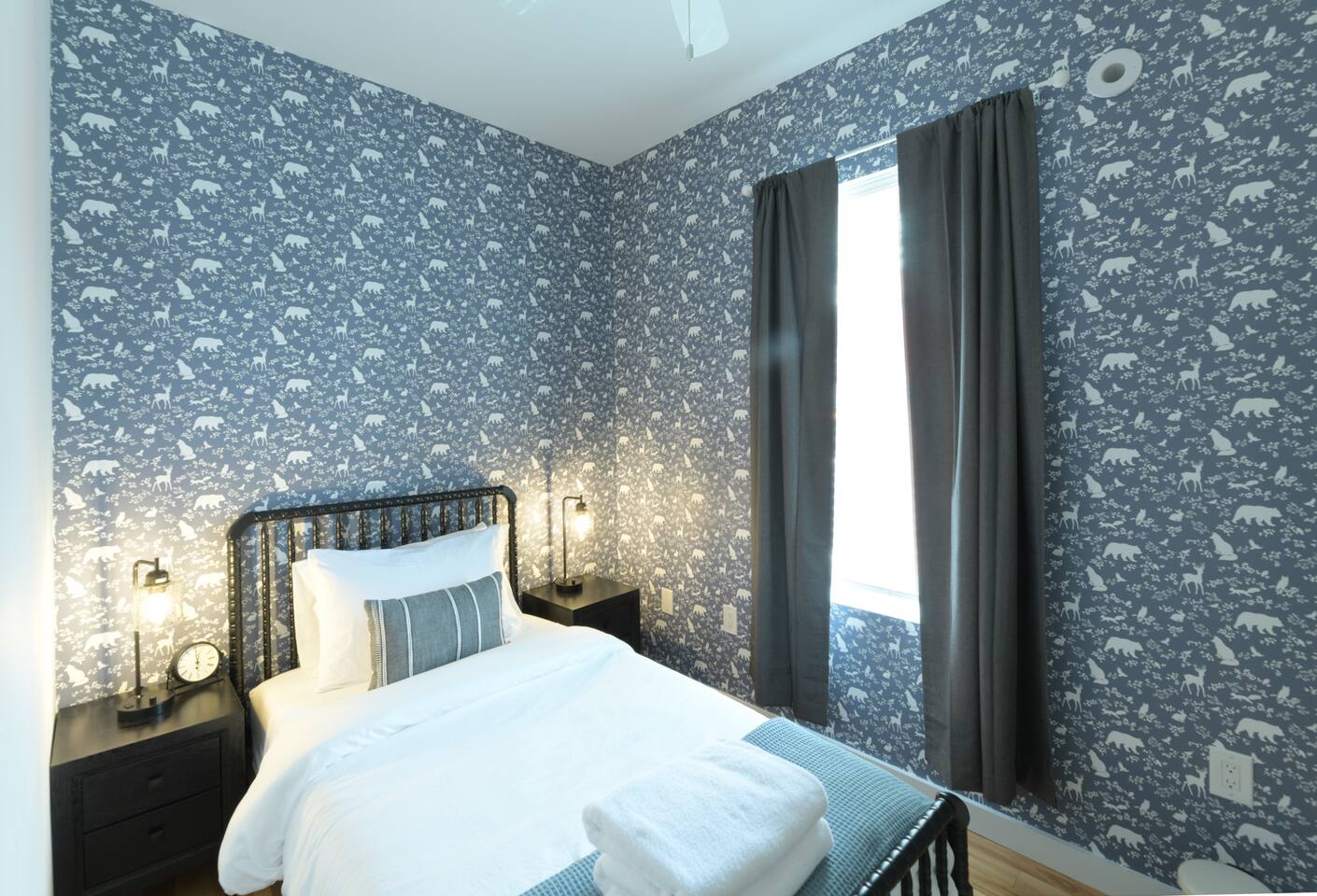 🛋️ THE SPACE Step into a thoughtfully designed space that blends sophistication and comfort. The open-concept layout connects the living, dining, and kitchen areas, creating a welcoming flow for both relaxation and entertaining. High-end furnishings, curated artwork, and elegant décor add to the stylish ambiance throughout. 🍳 KITCHEN The gourmet kitchen is a culinary enthusiast’s dream—featuring granite countertops, premium appliances, and a cozy breakfast nook. Whether it's a quick morning coffee or a full dinner party, this space is equipped to inspire your inner chef. 🛏️ BEDROOMS Bedroom 1: Full-size bunk bed with a pull-out twin trundle Bedroom 2: King bed and spa-like en-suite bathroom. Bedroom 3: Twin bed with memory foam mattress Sleeps 6 adults + 2 children | Max occupancy: 8 🚿 BATHROOMS Enjoy the convenience of 2.5 bathrooms—ample space for families and groups to get ready with ease. 🌟 KEY AMENITIES • Located in a vibrant, family-friendly, and safe neighborhood (walkable to cafes, restaurants, and ice cream shops) • 5-minute walk to Whole Foods • Lightning-fast, secure Wi-Fi • Seamless self-check-in with digital keypad • 55" Smart TV in living room + 45" Smart TV in primary bedroom • Dining table for 8 + breakfast bar seating for 2 • Fully stocked kitchen with cooking essentials and spices • Keurig single-cup machine with complimentary pods • French press with coffee bean grinder • Dedicated workspace with desk and chair • Toddler-friendly amenities: dinnerware, high chair, and pack 'n play • In-unit washer and dryer • Complimentary street parking with visitor pass 📍 NEARBY ATTRACTIONS • Old Town Waterfront – 5 min by car • National Harbor – 9 min • National Mall – 12 min • White House – 16 min • Washington Monument – 15 min • Smithsonian Air & Space Museum – 12 min • Kennedy Center – 12 min • Arlington National Cemetery – 10 min • National Zoo – 15 min • National Gallery of Art – 13 min • Gaylord Convention Center – 22 min • Reagan National Airport – 10 min • Dulles International Airport – 25 min 🛒 GROCERY STORES & ESSENTIALS • Whole Foods – 7 min walk • Trader Joe’s – 5 min by car • Target – 7 min by car • FedEx – 7 min by car 🏡 NEED MORE OPTIONS? If your dates aren’t available, please ask about our 3 other beautiful properties in Alexandria!
